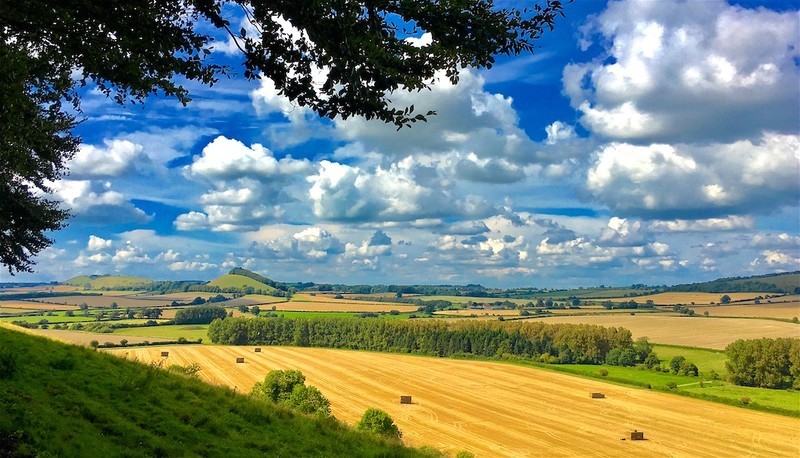 I crest the hill and the landscape bursts in front of me, rolling away in waves of olive and teal, dotted with the shattered white of chalk outcrops and the bright yellow of rape fields. A skylark twitters somewhere overhead and I can hear the tolling of the church bell at nearby Sutton Veny.