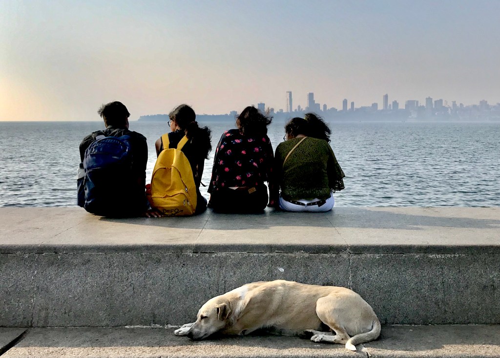 Evening on Marine Drive. Crowds of locals stroll along the concrete bund overlooking the choppy waters of Back Bay. Hawkers sell water, chai and snacks. A few hustlers try their luck with the occasional tourist…including me. Offshore, the sun is setting in a bright orange ball into the Arabian Sea.