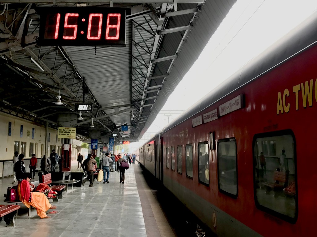 I talked to a woman in a beautiful yellow sari. She gave me some jackfruit curry and two chapatis.And then the linear world of the Nandigram Express was at Varanasi Junction and I was back out on another platform.