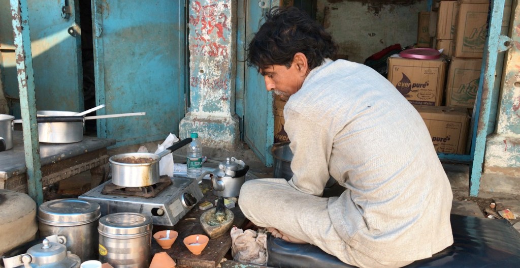 The tea boils for a minute or two. I chat to the four other patrons, all local men, waiting for their chai. One man speaks a little English and I tell him that I will pay for their chai. A small boy arrives, a collection of coins jingling in his hand. I tell the man that I’ll buy his chai as well and that he can keep his change for pocket money.