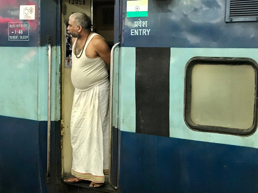 The train stopped for half an hour in Satna. Leaving town, along the backs of houses I saw shitting dogs, mooching cows, razor-backed pigs, a schoolboy in a bright red sweater and tie. Then the littered outskirts. The word SEX painted in white on a brick wall. Mr Feet², as I’ve named him, noisily eating chaat from a tinfoil bag. Then brick kilns, warehouses, slummy dwellings and the smokestacks of factories steaming in the distance.