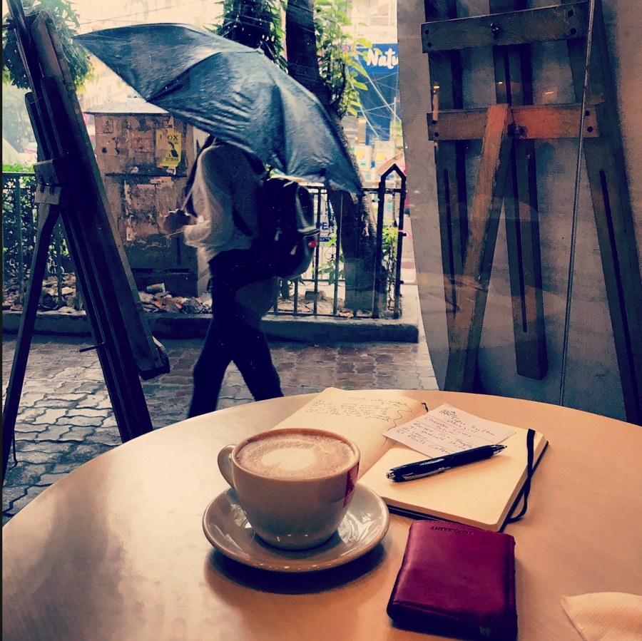 I finish my coffee and step out onto the street. I am immediately caught up in the flowing crowds: business-people on their way to work in the stone and steel towers louring overhead. After the quiet of the Barista Café, the roaring traffic, blaring horns and jostle of people is jarring. But the human current is inexorable; like a swimmer in a rip I have no choice but to go with it.