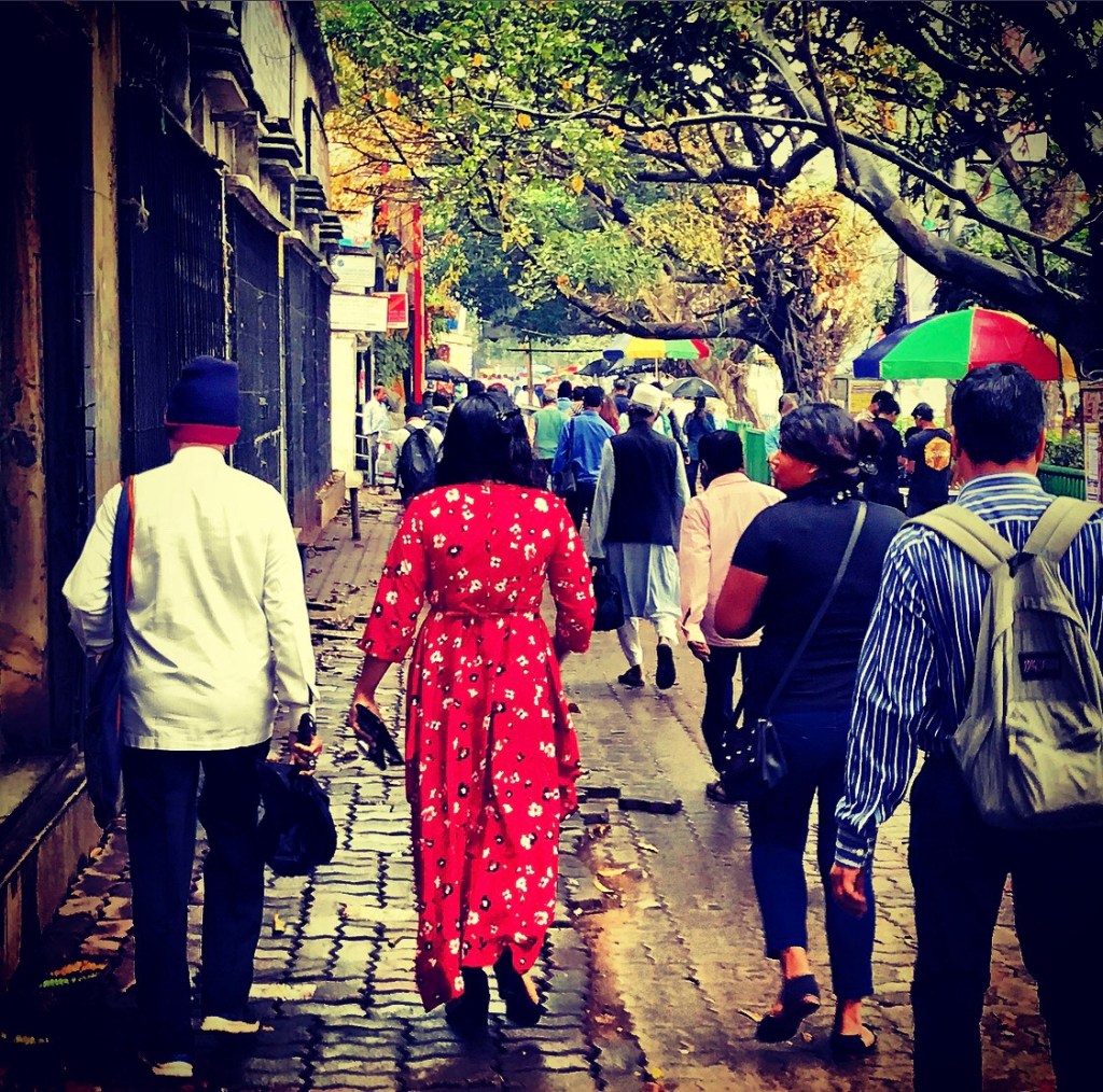 The crowds thin to a trickle: a Kolkata trickle, that is, with hundreds of people rather than thousands. The lady in red and her friend cross Dr M.L.K. Sarani Street and disappear into the city. As I lose sight of her I feel like a mariner who has lost sight of a beacon. I am in unknown waters here. But I have my chart and my course is plotted. I turn right across Park Street and into the old cemetery.