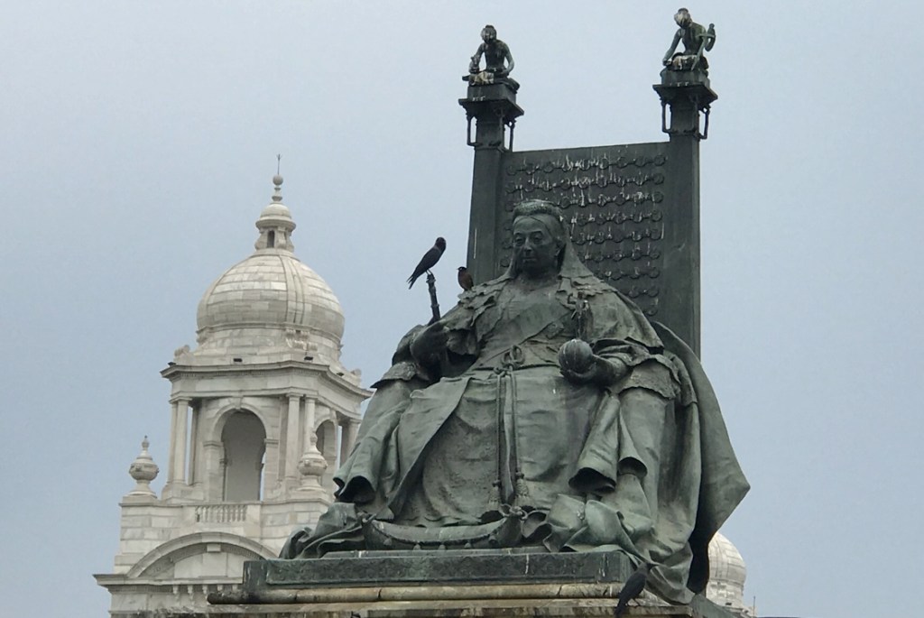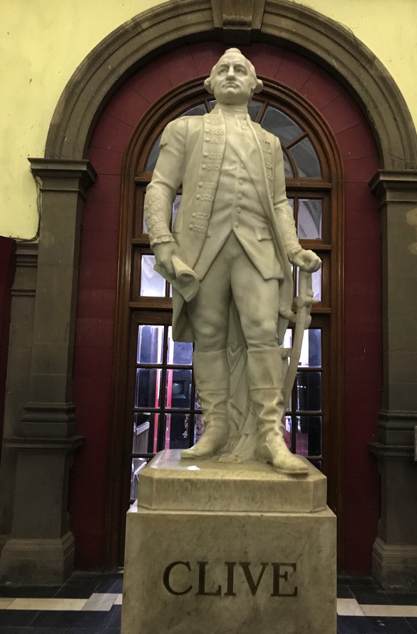 At the Victoria Monument, a vast domed marble edifice surrounded by fountains and gardens in the centre of Kolkata, I came face to face with the East India Company in the form of a statue. The subject stood resolute on its marble plinth. His eyes, set in a strong face with a rigid jaw and a slight scowl, stared rigidly out into the distance. In his left hand, he held a half-rolled scroll of documents; his right hand rested lightly on his sword. On the square plinth beneath his booted feet was carved one word: CLIVE.