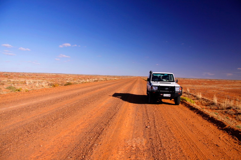 After days alone in the wilderness, Oodnadatta, the “driest town in the driest state of the driest continent”, feels like a bustling urban environment. At the Pink Roadhouse, I indulge in the sybaritic pleasure of a hot shower and numerous cold drinks. But I soon begin to feel a strange desire to haul the anchor up and drift further north, deeper into the continent. I refuel and drive to the edge of town where the tarmac crumbles into red dirt again. The road converges to a point on the horizon…and vanishes.