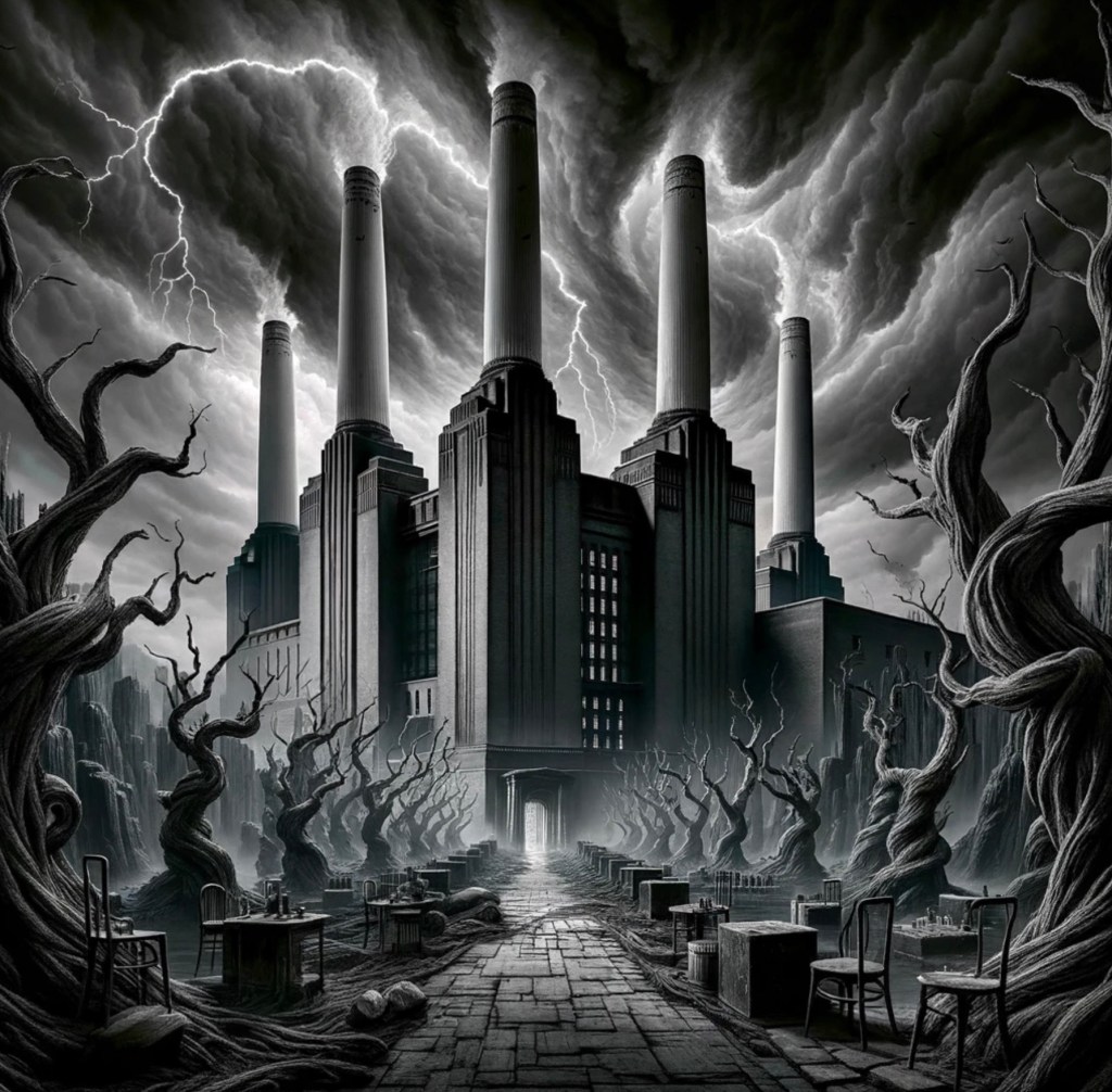 I am Battersea Power Station. I am the modern-day Valhalla. I stand tall and imposing over the London skyline. My chimneys reach towards the heavens, a testament to human ingenuity and power. Within my walls, the echoes of a vanished industrial era linger. The long-dead dynamos, which once roared within my perpendicular walls, have fallen silent, replaced by the hum of a different kind of life. “Welcome to the machine,” whispers the memory of my industrial past, a time when I was the heart of London’s power.