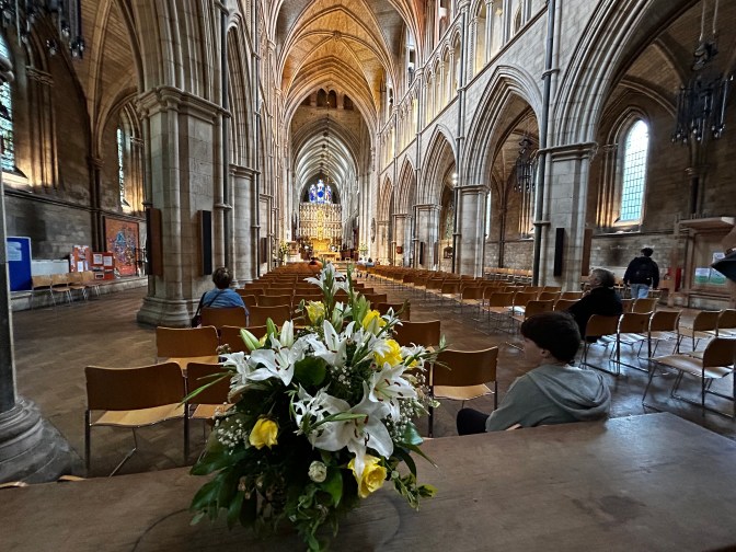 I take a seat in the centre of the nave. The tranquillity of the cathedral seems almost tangible. I can hear the whisper of each footstep on the ancient flagstones and the soft rustle of paper from a lone worshipper’s prayer book. The noise of the city outside is nothing more than a low, sibilant hum: part of the cathedral’s tapestry of calm. The silence becomes not just an absence of sound, but a presence in itself. Time itself seems to slow down and I feel myself recharging, re-energising before my next foray into Borough Market.