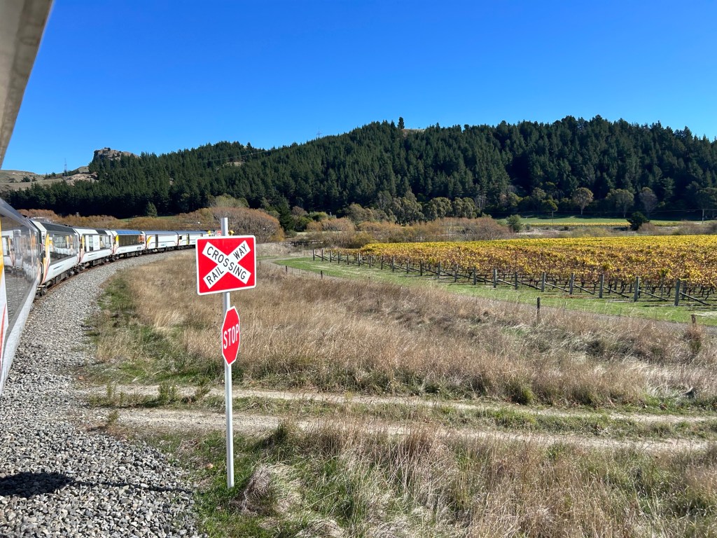 Neat rows of grape vines are stitched into the fertile river flats on the approaches to Blenheim. The vines are crimson and yellow with autumn foliage. The train click-clacks into the station and I disembark. As I walk out onto the street, I hear the train whistle blow as it begins the final stretch of its journey along the silver lines.