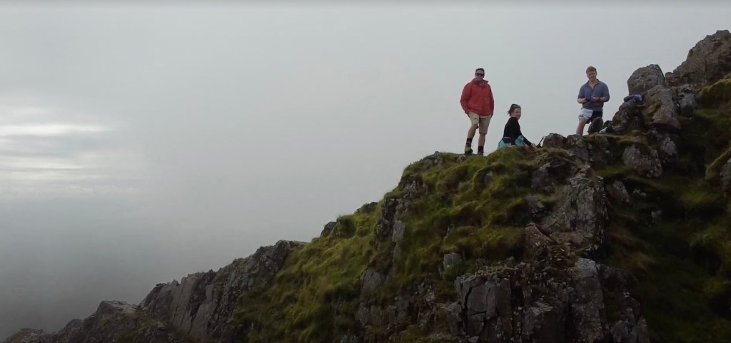 The footage I obtain, however, is nothing short of spectacular. The three of us stand on a lonely bluff above a precipitous declivity, wrapped in a fine gauze of mist, with glimpses of the heights of Crib Goch and the summit of Snowden beyond. It is a dramatic, hauntingly beautiful scene that captures our place in this raw, unyielding landscape; a fulcrum in time upon which balances the mountain’s long past and unyielding future.