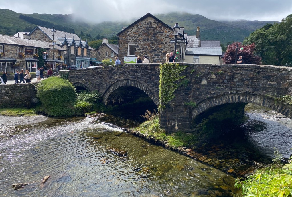 But where the sublime is found, the ridiculous is never far behind. The town of Beddgelert (pronounced “Beth-gellert”) itself is a bit of a tourist trap, with souvenir shops, bunting, and crowds of day-trippers…including us. We choose a tea shop and refresh ourselves with cups of tea and a selection of treats. The Afon Colwyn trickles through the centre of town, its banks aswim with a colourful profusion of wildflowers and spanned by a graceful stone bridge.