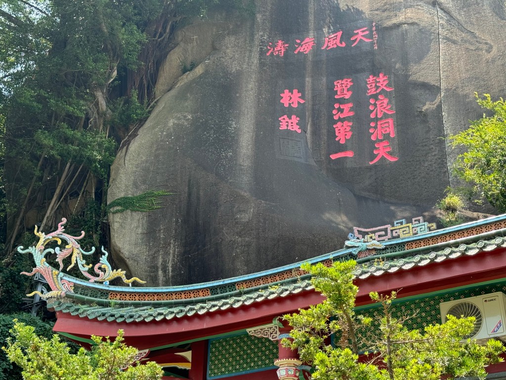 The way lies through a series of gigantic boulders, stacked like a stupa on the north eastern side of Gulangyu. Huge fig trees, like movie-set monsters from a sci-fi fantasy, have entwined their roots deep into the cracks and fissures. Small side paths lead to tiny secluded platforms and landings where contemplative inscriptions are chiselled into the living rock and etched in gold and red. Each one of these hidden places provides a glimpse of a different part of the island, framed by branches and leaves.