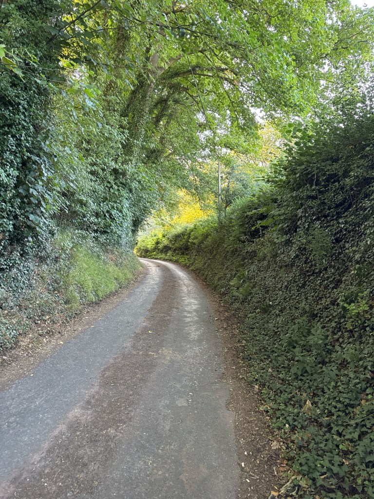 At the top of the field, the bridle path joins an ancient sunken lane. The banks are steep and shaded, overgrown with what I think are holly and ash. Roots clutch at the path like old hands. This is a holloway: a lane worn into the earth not by design, but by time. A thousand years of hooves, feet, and wheels have carved it slowly, deeply. Each passing figure has left a trace, imperceptible on its own but part of the long erosion that made this place. Now it lies almost forgotten in this quiet corner of England. Known only to badgers, foxes, and the early risers who still walk.