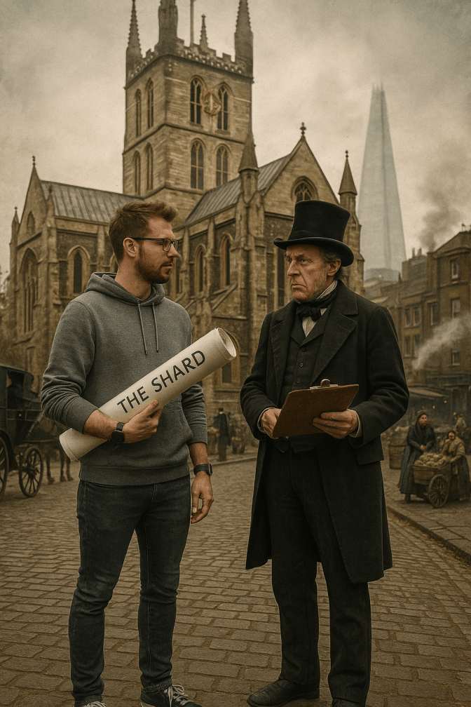 Sir, I have, in my day, had dinner with the real Project Manager of The Shard—in Lydiard Millicent, of all places—and I can assure you the logistics are sound. Our lifts ascend faster than your Brighton Express. The structure’s bones are steel; its skin, glass; its spirit, unflinching ambition.
