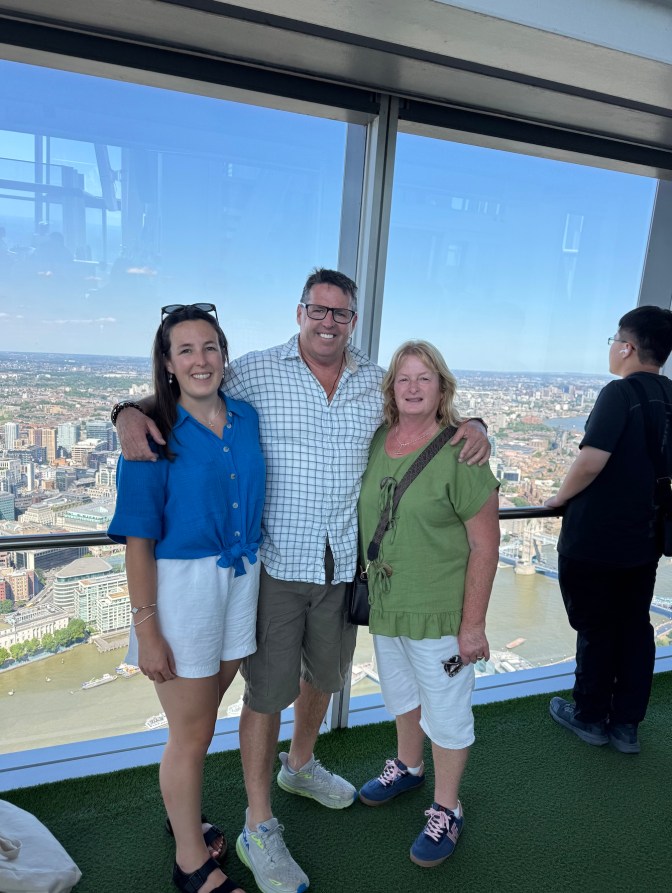 But drinks are being served—a Coke for me, bubbles for Linda and Lydia— and there are selfies to take. After all, this is what the modern public demands: proof of presence, tokens of altitude. Somewhere far below, in an imagined committee room wreathed in pipe smoke, I can almost hear Chairman Throckmorton and his fellow aldermen harrumphing into their ledgers, still unconvinced that any respectable citizen would pay sixpence to stand in the clouds. Yet here we are, glasses raised, London spread beneath our feet, fulfilling a future they could never have planned for, but one they might, in some grudging, gaslit way, admire.