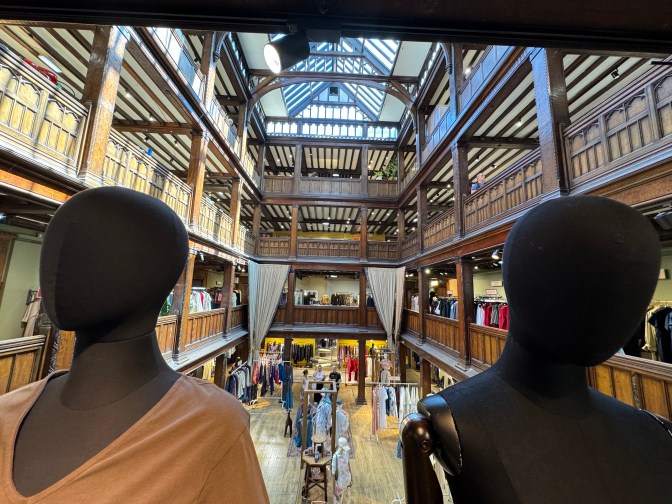 This building—with its gables and galleries, its creaking floorboards and carved balconies—was constructed in the 1920s from the bones of two Royal Navy ships: HMS Impregnable and HMS Hindustan. They were grand old wooden warships of the Victorian navy, built of oak and teak. When their time at sea ended, their timbers found new purpose here, as pillars, beams, banisters, and balustrades. The wooden walls of the old empire became a department store made for the new empire; the empire of commerce, fashion, and disposable income.
