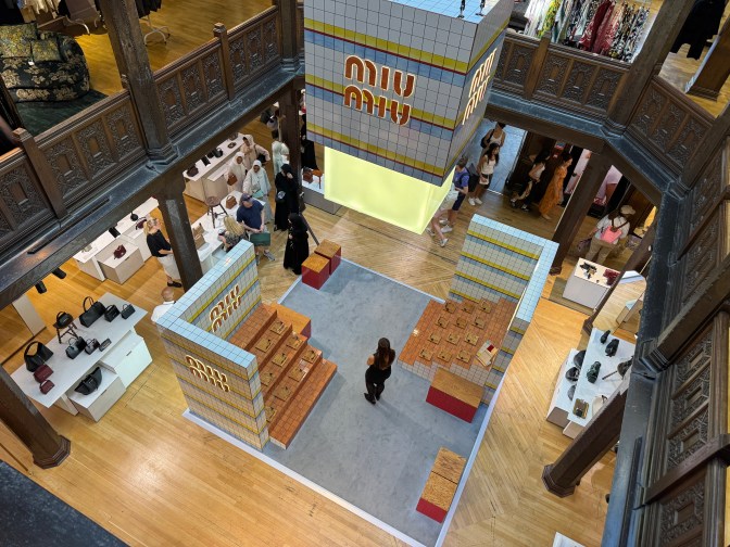 I wander deeper. Everything here is curated to suggest luxury: not just the stuff of it, but the air around it. Liberty is a palace of things, a museum where everything is for sale and nothing stays the same except the building itself. That’s what has brought me here. Not the scarves or the scents or the fashion on parade. But the structure. The ship.